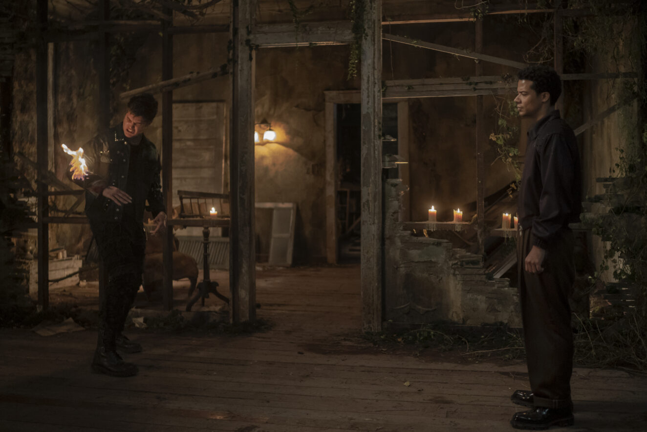 Jacob Anderson as Louis De Point Du Lac and Sam Reid as Lestat De Lioncourt – Interview with the Vampire _ Season 1, Episode 7 – Photo Credit: Alfonso Bresciani/AMC